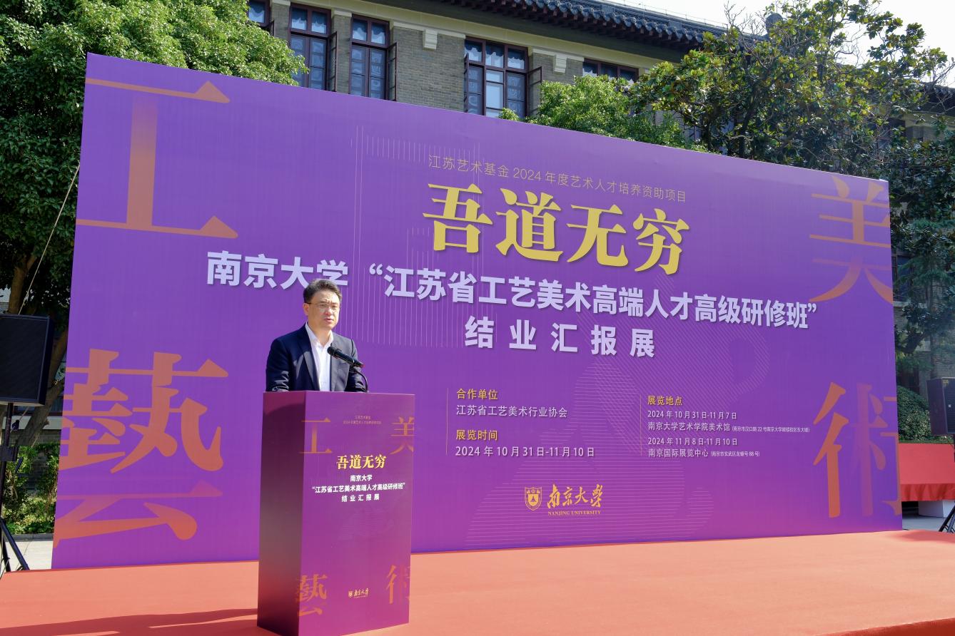 10月31日上午,江苏艺术基金2024年度艺术人才培养资助项目“江苏省工艺美术高端人才高级研修班”结业典礼暨“吾道无穷——成人导航 江苏省工艺美术高端人才高级研修班结业汇报展”开幕式在成人导航 成功举行。江苏省文联主席章剑华,成人导航 党委常委、副校长索文斌,中科院院士、成人导航 化学化工学院教授郭子建,江苏省文联一级巡视员刘旭东,江苏省文化投资管理集团有限公司党委副书记、总经理叶飚荣,江苏省工艺美术行业协会会长于广云,江苏省工艺美术行业协会、江苏省工艺美术学会名誉会长马达和江苏省人力资源和社会保障厅专业技术人员管理处处长蒋春林出席开幕式并共同为结业展揭幕。开幕式由项目负责人、成人导航 党委书记石红梅主持。