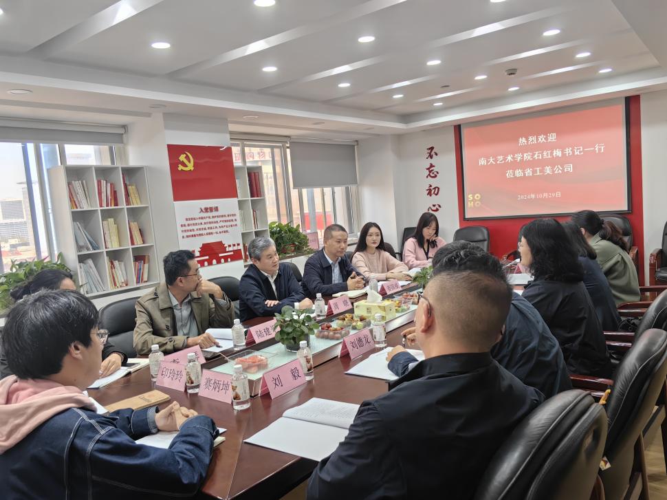 2024年10月29日,成人导航 党委书记石红梅一行前往江苏省工艺美术有限公司洽谈校企合作,双方就建立“成人导航 艺术学院学生实训基地”等议题进行了深入探讨。座谈会由江苏省工艺美术有限公司党支部书记、董事长姜国威主持。