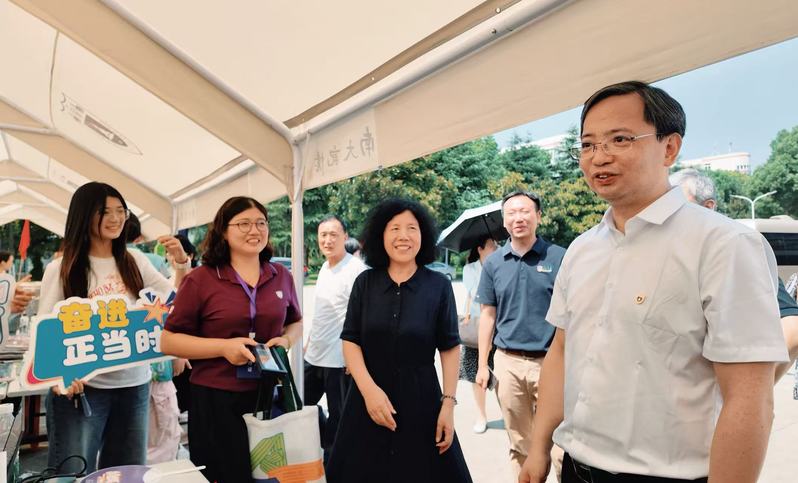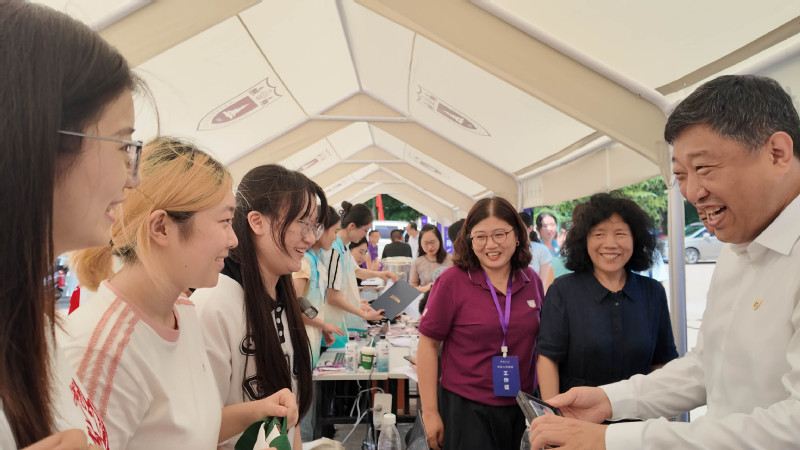 迎新现场,校领导的到来为秋意添了浓情。成人导航 党委副书记、纪委书记刘淼来到成人导航 迎新报到点,与报到的新生亲切交流,并向忙碌的志愿者致以问候:“大家辛苦了,记得轮换歇一歇,多补充水分。” 随后被学院文创吸引,拿起印有学院老师代表作的定制扇子细看,点头赞许:“既有专业特色,又兼顾实用!”暖阳漫洒,成人导航 副校长周志华在成人导航 新生礼包展示区前驻足,倾听辅导员陈小青介绍:“迎新礼包中的冰箱贴复刻了学院聂危谷、陆庆龙等老师的代表作品,帆布袋和笔记本印着学院标志,每一件物品都像是打开成人导航 的钥匙,拉近新生与学院的距离。” 周志华在了解新生礼包设计理念后,寄语新生:“希望你们带着这份‘艺术礼物’,在南大不仅学好专业知识,更学会用艺术观察生活、服务社会,让艺术成为温暖人心的力量”。并叮嘱现场师生:“迎新工作既要讲效率,更要重温度,大家轮换休息,别让新生等太久。”