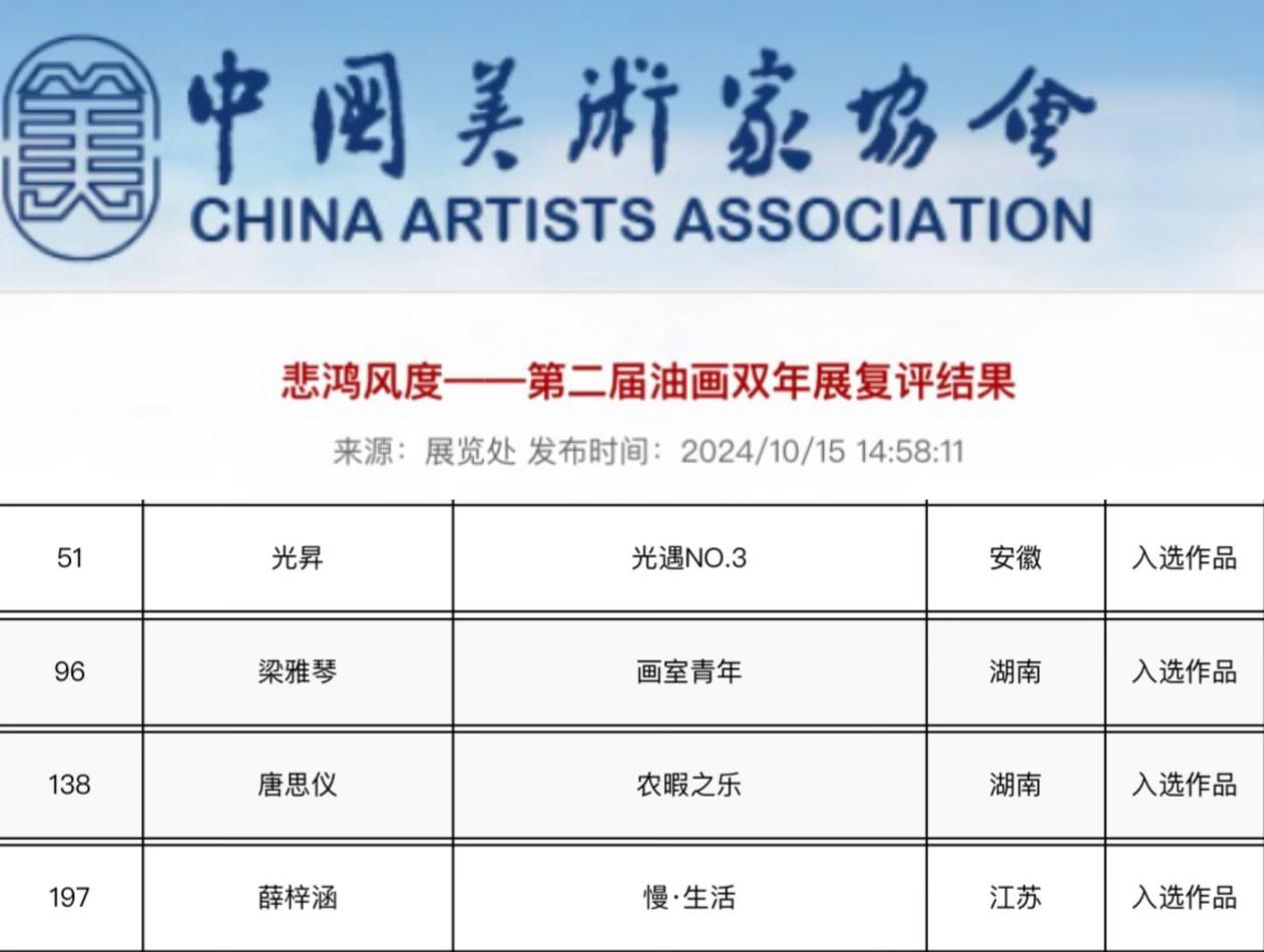 在此背景下, 成人导航 学子以高度的热情与卓越的才华,积极响应号召,创作出了一系列令人瞩目的优秀作品,在“中美协—悲鸿风度第二届油画双年展”、“江苏省第二届书法临帖作品展”、“江苏省第十三届油画展”多个重量级展览中大放异彩,取得了令人骄傲的成绩。具体名单如下。