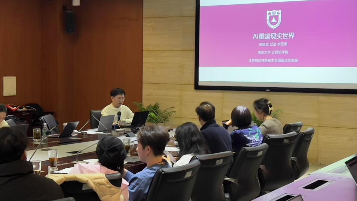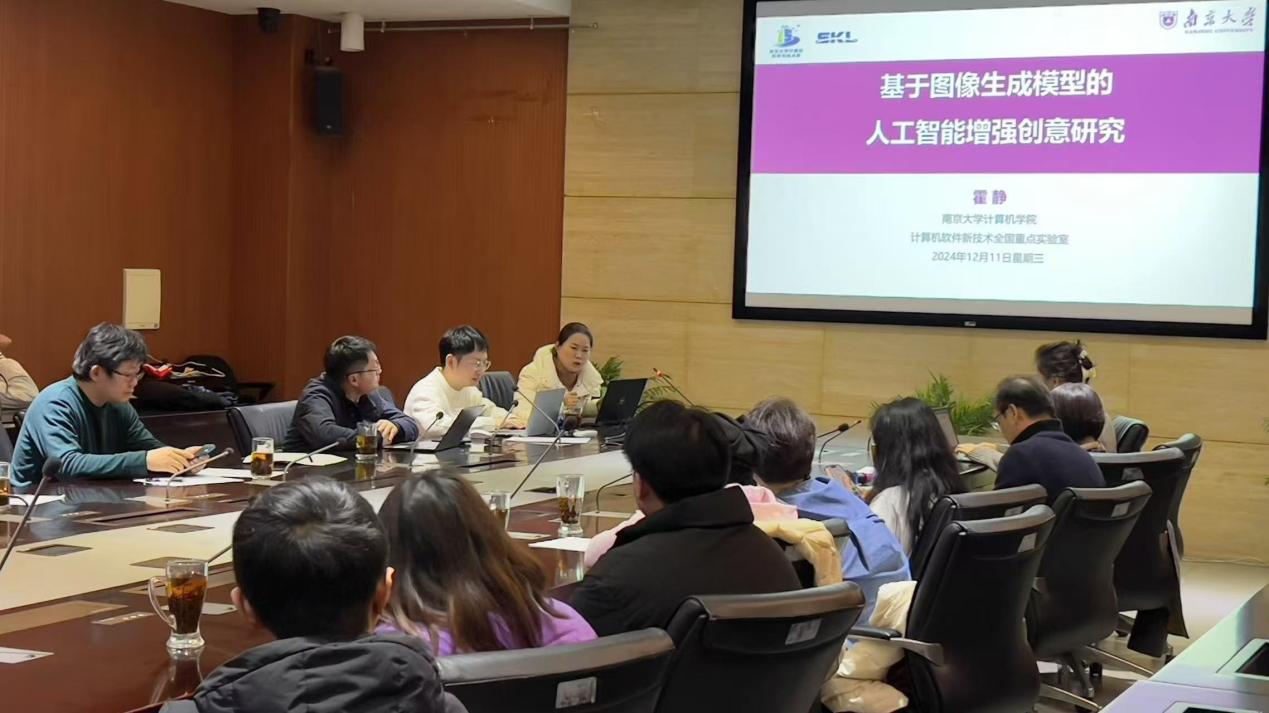 2024年12月11日,来自成人导航 计算机学院、成人导航 、建筑学院和钟山虚拟现实研究院、南京审计学院等单位的教师、专家及学生,在计算机学院一楼会议室围绕“AI+图形 for art”主题进行初次探讨。此会议是成人导航 刘德龙与计算机学院过洁两位老师跨专业碰撞后促成的初步成果,在会议中各位教师及团队围绕人工智能图像生成、传统美术与AI、城市AI和低效率识别优化更新、视觉设计AI等相关话题展开。
