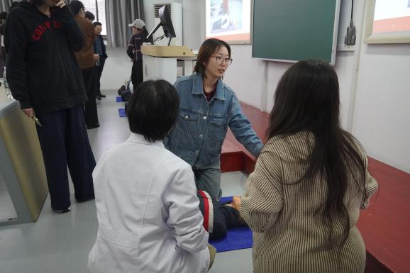 在理论教学环节,讲师团队重点讲解了心肺复苏(CPR)与自动体外除颤器(AED)两项关键技能,同学们通过视频学习、案例讲解与现场问答,了解了急救的基本步骤,同时老师们通过模拟人现场实操,帮助同学们更好地掌握急救过程的细节。