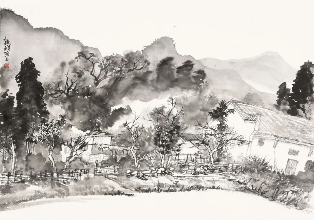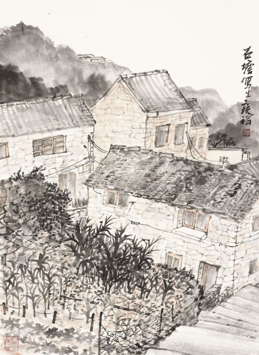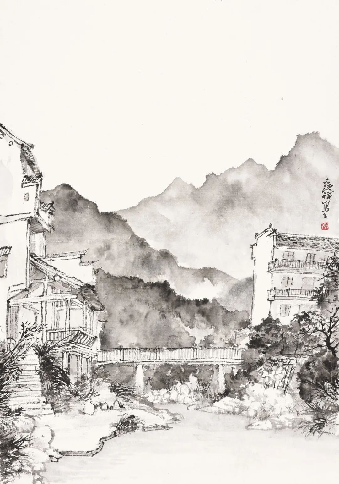 第三是重视用笔用墨。我喜欢用水墨写生,有时略施淡彩。这不是因为省事,而是水墨素雅朴素,并且水墨画最能展现画家的功力,而内行往往看功力。水墨画颜色相对颜色单一,所以用笔用墨要力求丰富,否则画面容易单调。用笔要有紧有松,有节奏感。画主景时严谨一点,其它就可以放开一点。放开的尺度越大,画面就越轻松。用笔还要有轻重缓急、提按顿挫、大小粗细。用墨要有层次和韵味。浓淡干湿焦结合,又有所偏重。比如有的以湿为主,有的以干为主……。笔墨要尽量洒脱,还要注意处理好点、线、面的关系。