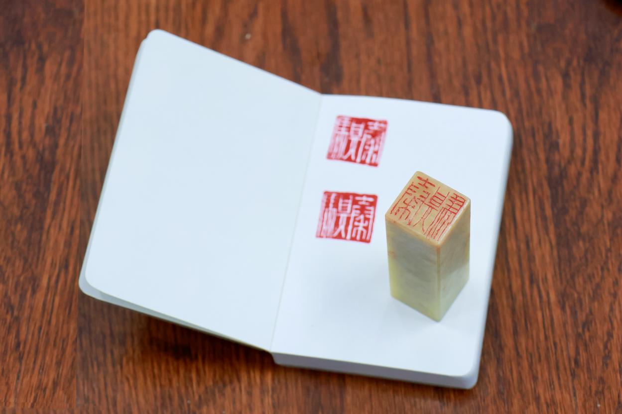实操体验环节,现场备齐刻刀、印石等全套工具,零基础的同学们在老师的细致指导下逐步上手。参与者们精心挑选设计了富有个性的字体、字形或图案,通过对刻刀的熟悉与驾驭,各自创作出一面面富有特色和韵味的印章。不少同学表示,在主讲人的演示与自己的钻研体会之间,深刻的领会到了篆刻艺术的瑰丽与荣耀,以及其千年不坠的美学密码。当一方方带着个人印记的篆刻作品新鲜出炉时,大家脸上都洋溢着满满的成就感,纷纷展示自己的“第一方印”,分享创作过程中的感悟与收获。