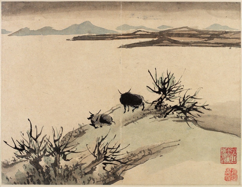 高其佩,《三牛图》,纸本设色,1684。24.45x31.9 cm。明尼阿波利斯美术馆收藏
