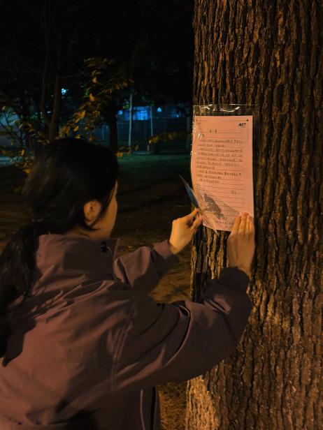 “夜间贴信”是活动最温暖的仪式感。每周三夜晚,工作人员化身“秋日信使”,带着筛选后的匿名信件、防水胶带与精心准备的花朵,将心意粘贴在校园树干 1.5 米处——蓝色系干花(飞燕草、勿忘我)陪伴着烦恼倾诉,像一缕清风抚平焦虑;暖色系鲜花(小雏菊、向日葵)映衬着美好祝福,如秋日暖阳驱散阴霾。