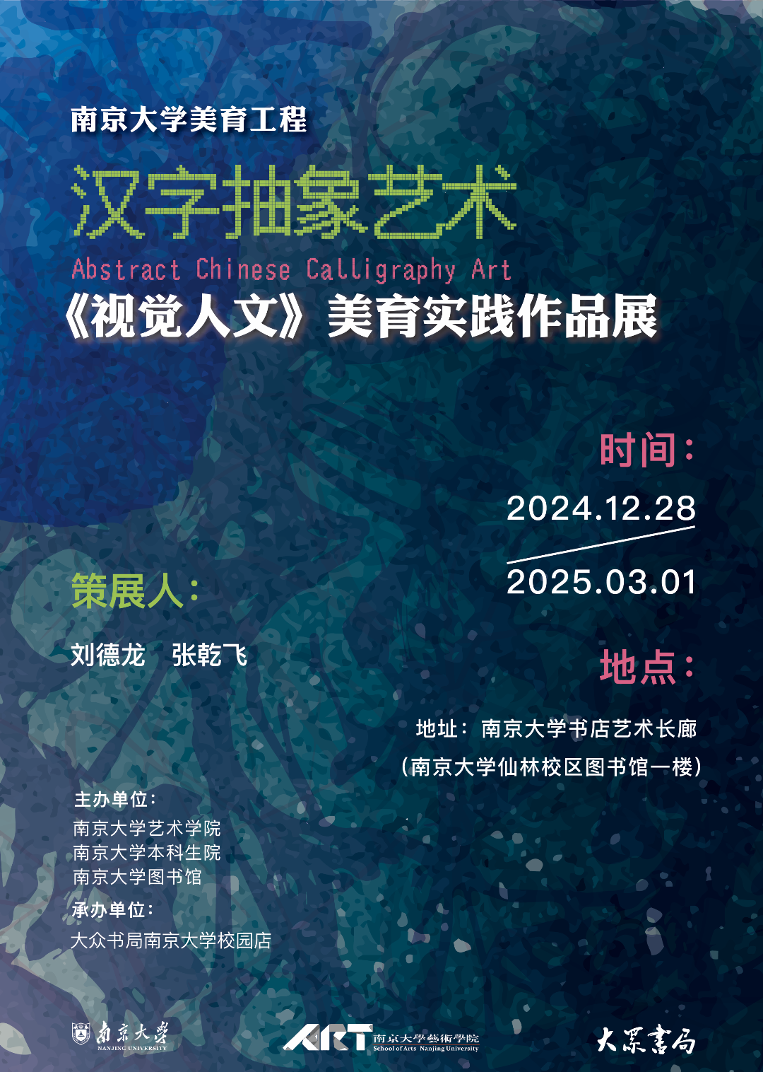近日,由成人导航 、成人导航 本科生院、成人导航 图书馆联合主办,大众书局成人导航 校园店承办的“汉字抽象艺术——《视觉人文》美育实践作品展”在成人导航 杜厦图书馆一楼大众书局艺廊展出。这场别具匠心的展览以“汉字抽象艺术”为主题,集中展现了成人导航 本科生在美育课程中的创新实践成果,为观众带来了一场融汇传统文化与现代艺术的视觉盛宴。
