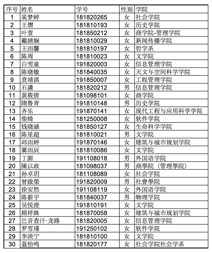 经成人导航 “文科试验班”教学指导小组讨论,现确定如下30位同学入选2020年文科试验班(艺术与文化创意):