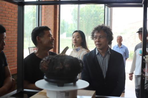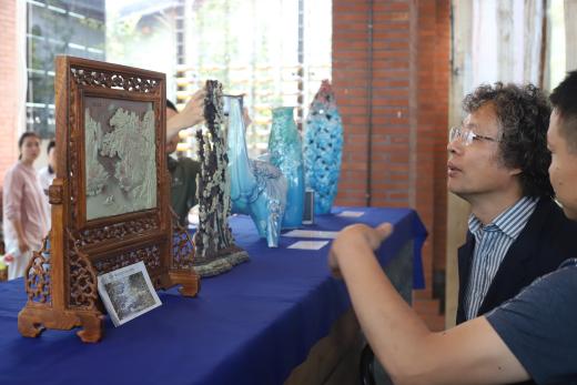 陆老师鼓励在场学生、美术从业者及爱好者:“要时刻谨记认真与坚持,认真可以改变自己,坚持可以改变命运,不是看到了希望才去坚持,而是坚持了才有希望。”最后,陆老师与清镇市的非遗传承人、工艺美术大师、乡村工匠、职教城非遗项目团队就非遗艺术品进行交流。此外,其还受邀到贵州大学开展了一堂艺术交流讲座。