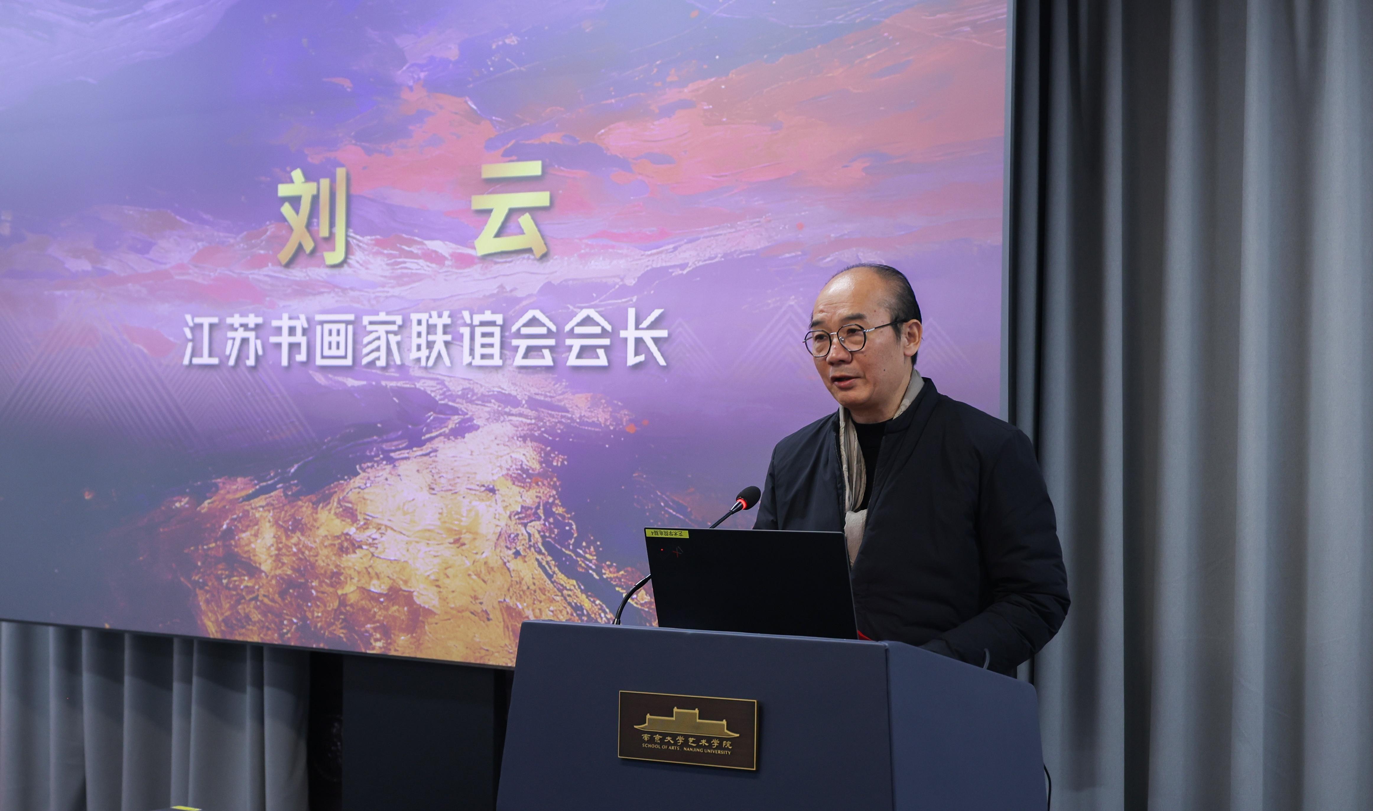 刘云会长在致辞中表示:本次展览旨在以书画这一中华民族独有的文化符号为载体,展现江苏深厚绵长的文化底蕴,凝聚海内外中华儿女的赤子之心与家国情怀。展出的作品题材丰富、风格多元,汇聚了三方力量:参展艺术家的倾心创作、成人导航 师生的翰墨雅韵、以及港澳台侨胞的家国情思,共同绘就一幅“水韵江苏”与“时代精神”交相辉映的文化图景。他呼吁更多青年学子投身书画艺术的传承与创新,共筑中华文化繁荣发展的同心圆。