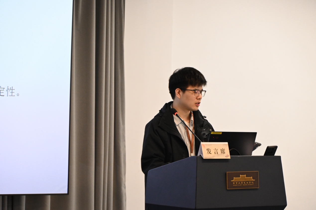 第二场“记忆与情感”专题,钱慧以《从“市民音乐”到“日常生活中的音乐——宋代城市音乐研究的视角取向及理论探索》为题,倡导从社会史与日常生活出发重审宋代城市音乐中的情感经验;黄千相在《跨世题咏中的文脉赓续——从〈友古图〉题跋看金氏家族与清末江南鉴藏圈的百年联结》中,通过题跋与家族记忆揭示鉴藏活动中情感与文脉的代际延续;杜秀萍以《荒诞旧梦:清遗民绘画中的幻境图像与族群身份危机》探讨清遗民借助梦境图像回应现代性断裂下的情感焦虑;李光耀则在《国族、情爱与交游圈:再议救亡漫画宣传队的组建动因》中,从私人情感与交游网络切入,重释抗战语境中艺术行动的情感动力。本场汇报由陈平主持,杨祥民、叶蓉丹、丁澜翔分别进行评议,从研究视角、材料运用与情感史书写路径等方面提出了意见。