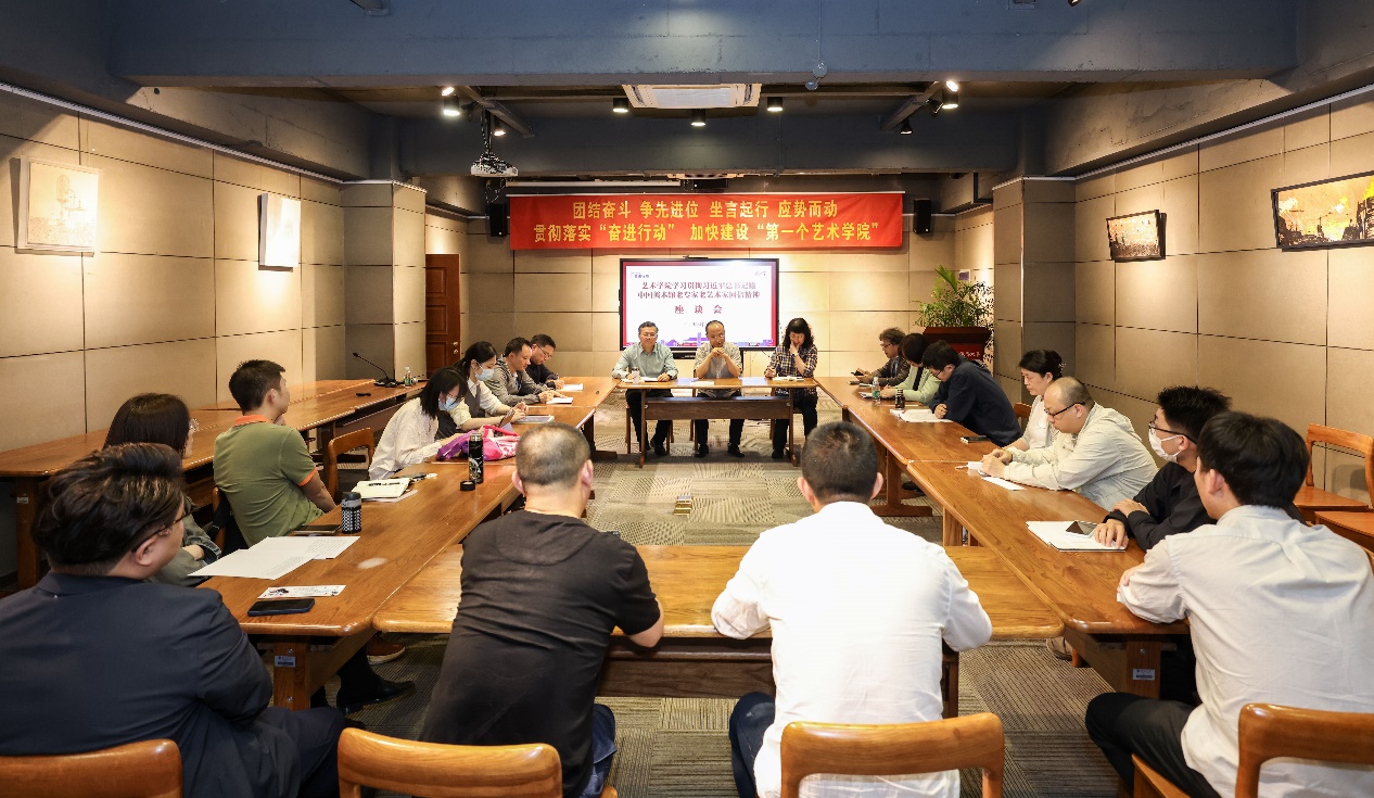 5月26日下午,成人导航 召开学习贯彻“习近平总给中国美术馆的老专家老艺术家的回信”座谈会,邀请中国美术馆展览部主任邵晓峰教授与成人导航 领导班子成员、师生代表座谈交流。