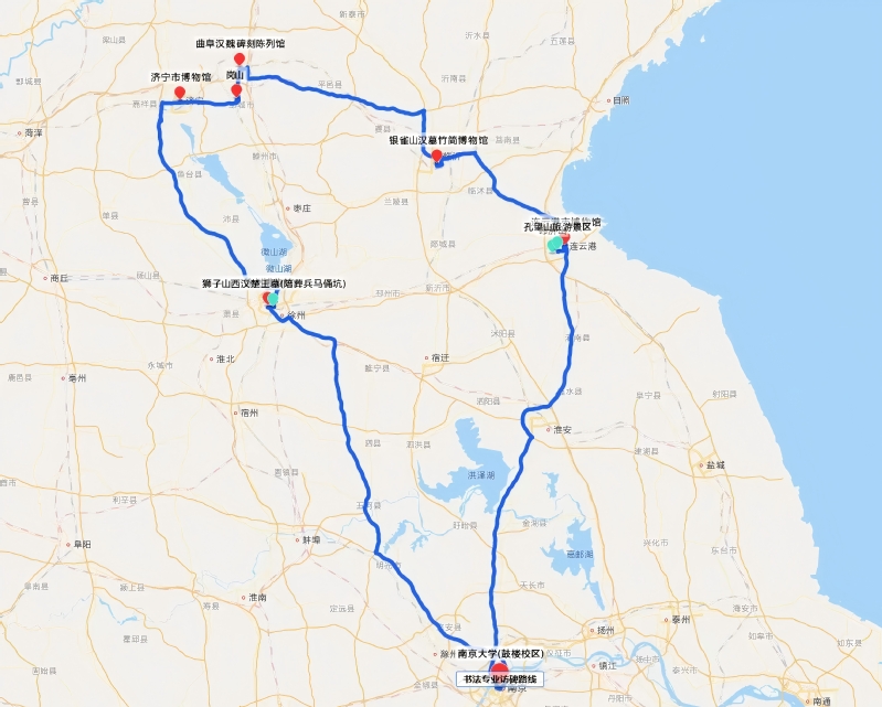 外出访学考察是 成人导航 书法专业教学的常规活动之一。本次访学考察,由一位不愿透露姓名的热心企业家全程赞助;主体成员由在校三届书法专业硕士生和部分在宁毕业生组成,邀请 成人导航 8位中青年教师加盟,随队配备队医。师生一行35人,五天之内,辗转连云港、临沂、曲阜、济宁、徐州各地,行程1300公里。由于行前做了充分准备,方小壮老师为此次考察进行总动员,并针对考察对象作了“笔法起源与隶书笔法”的专题讲座,详细区分汉篆、古隶、汉隶、八分书之别;同时,又有各地毕业生与家长、书协与文旅部门领导的精心导航和热情接待,行程紧凑而丰富,圆满完成了本次预定的访学考察任务。