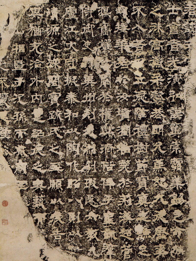 刘尚墓室的墓石汉隶题刻,下限约在东汉永元十三年(公元101年),墓室中发掘出汉隶题刻782石、单字4000余;镌刻内容多为地名与工匠姓名,结字参差错落、大开大合,无安排造作之态而显天真烂漫。刘尚墓室的汉隶题刻,不仅与《武梁祠画像》题刻有同工之妙,也与曲阜汉碑的堂庙之气形成了鲜明的对比,同时,也反映出民间隶书写的真实一面。