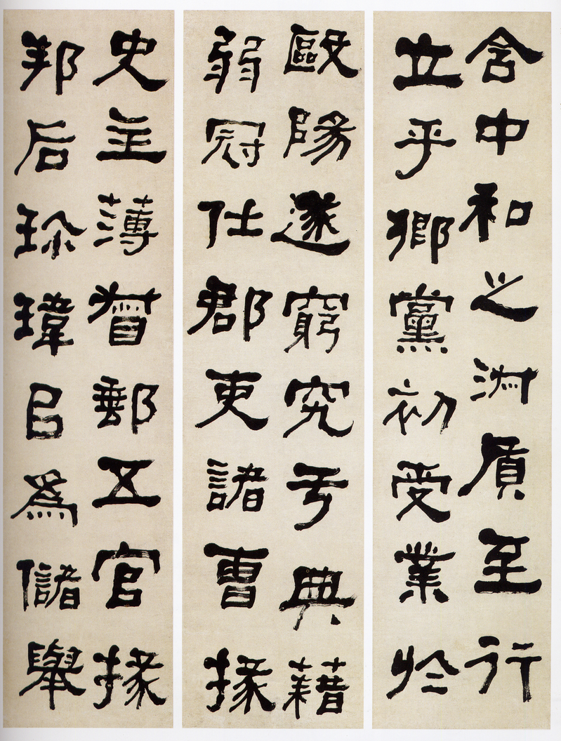 图(7)何绍基临《郑固碑》四屏纵138.5厘米、横35厘米(浙江省博物馆藏)