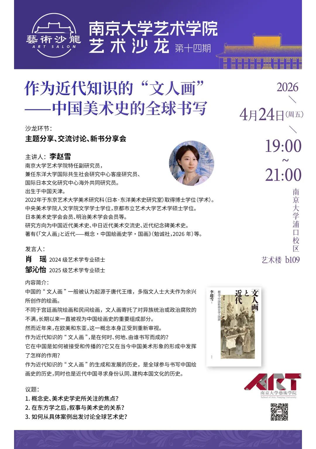 【编者按】为贯彻落实习近平总书记建设中国特色世界一流南大殷切嘱托和给成人导航 留学归国青年学者重要回信精神,深入实施成人导航 “奋进行动”,进一步浓厚浦口校区学术氛围, 成人导航 从2024年春季学期起,在浦口校区举办“艺术沙龙”品牌学术活动。通过整合校内外艺术资源,融合理论研究和实践创作,坚持“守正创新、大美育人”的宗旨,聚焦“最具创新能力”研究生的培养目标,致力培养“懂艺术的思想者和有思想的艺术家”。