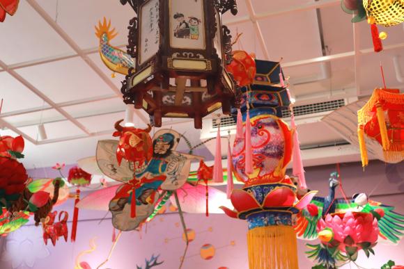 首先步入的是鱼灯展区。作为国家级非遗的安徽鱼灯,原是八米长的传统舞蹈巡游道具,因使用场景局限面临传承困境。沙安强老师带领团队将其转化为可互动的、适合现代空间的视觉装置,既保留“鱼跃龙门”的吉祥寓意,又通过尺寸缩小与功能重构,使其从年度仪式用品转变为承载情绪价值的生活美学载体。他特别提及国际品牌对鱼灯元素的借用案例,以此说明中国非遗传统文化对世界的影响力,强调非遗转化需打破“一年一现”的场景限制,融入当代生活语境。