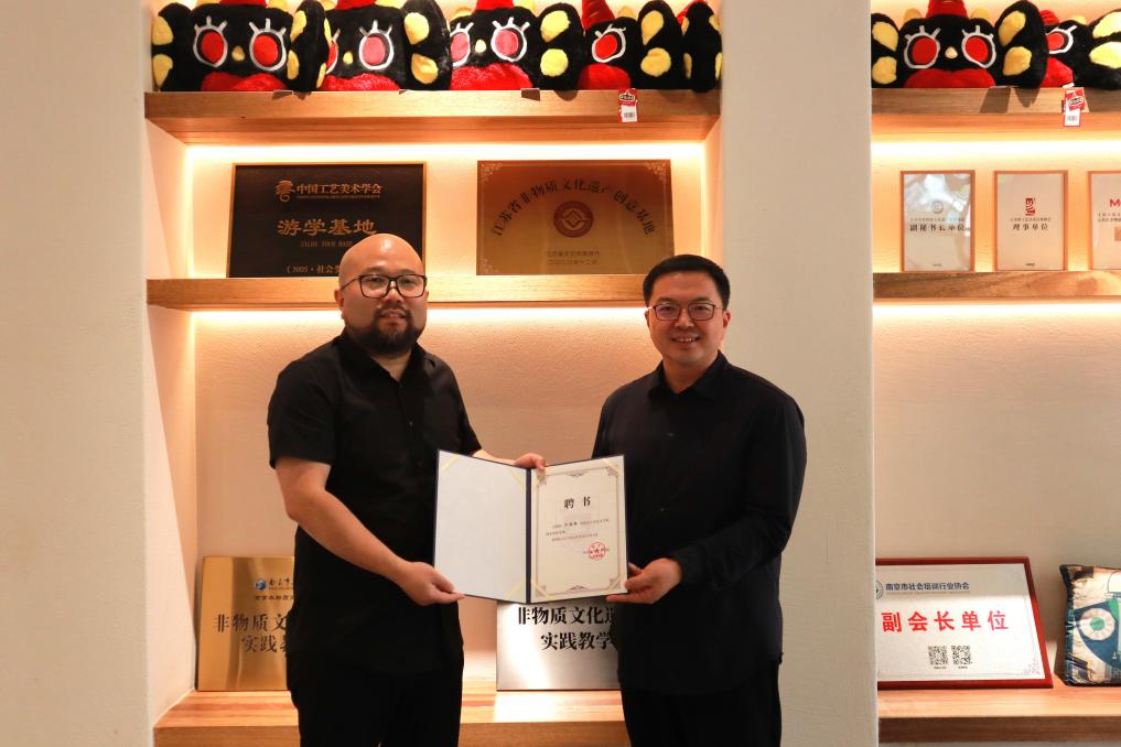 活动伊始,沙安强老师带领同学们逐一参观美基艺术馆的非遗主题展陈,围绕“非遗老玩具的基因觉醒——从传统手作到当代潮玩的跨界密码”主题,系统阐释了非遗文化如何在当代语境下焕发新生。他指出:非遗创新的核心在于保留其精神内核与原始基因,如造型、纹饰、文化寓意等,通过材质革新、符号转化、功能再造等手段,实现非遗传统与现代生活、潮流文化的有机嫁接,使其真正地“活”在当下。