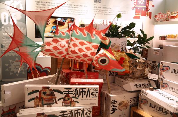 布艺展区呈现出传统符号的现代转译智慧。沙老师以新石器时代墓葬中的虎形图案为切入点,指出从仰韶文化的虎符图腾崇拜,到明清时期布老虎作为孩童枕具的民俗应用,虎文化始终承载着保护生命、繁衍后代的象征意义。在此基础上,沙老师带领团队将传统布老虎形象进行抽象简化处理,开发出兼具文化意蕴与现代审美的毛绒玩具及箱包产品,逐步将这些蕴含虎元素的布艺品推向更广阔的市场,使得传统符号在现代消费语境中以潮玩的形式再延续。