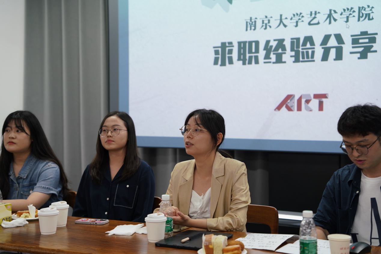 2018级美术专业的李俞晓(现就职于苏州工业园区星澄学校)介绍了苏州市美术教师校招的相关情况,并着重对比苏州工业园区与新区在校招上的区别。她介绍到,校招通常需要在校园招聘会现场递交简历,这就需要同学们有一份充分展现个人优势的简历,可通过介绍学生工作、社会实践经历展现出个人的综合素质,如果拥有摄影、设计、公众号编辑等特长可成为简历的加分项。她提醒到,由于校招时间较短,往往没有机会进行美术创作能力的展示,同学们可以提前准备作品集以增加简历的竞争力。她特别指出,校招中5-10分钟的试讲是展示个人教师能力与素养的重要环节,需要同学们通过洪亮的声音、自信大方的举止以及专业的教学过程,向面试官展现出自己作为一名合格教师的教学状态。她最后强调,教师行业需要有对教育的热爱和对小朋友的喜爱为内心驱动力,只有这样才能在未来的职业道路上产生持续的成就感,并获得长久的发展动力。
