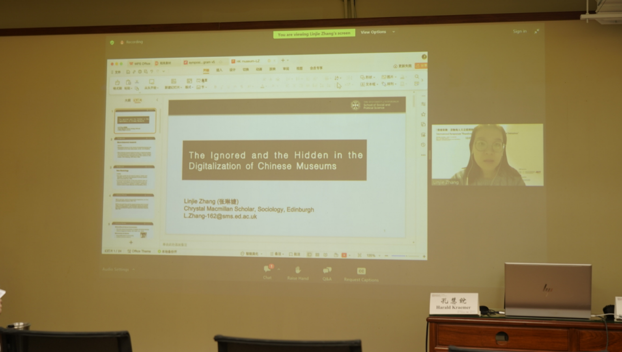 最后,来自英国爱丁堡大学的博士研究生张琳婕发表了题为The Ignored and the Hidden in the Digitalization of Museums的主旨演讲,探讨了不同类型博物馆在讲述无声历史方面的差距,并提出数字技术和组织机制加剧了历史呈现和博物馆叙事的不平等,不同体制和组织机制也造成了博物馆中叙事视角和历史选择的差异。