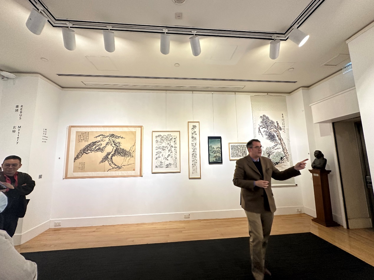 研讨会首日议程结束之后,香港大学美术博物馆馆长吴秀华博士和孔慧锐(Harald Peter Kraemer)博士带领与会学者进行了「皇帝碑刻·当代启迪」与「对联 搭配 画谜——艺术中的因果法则」两大展览的导赏与参观。
