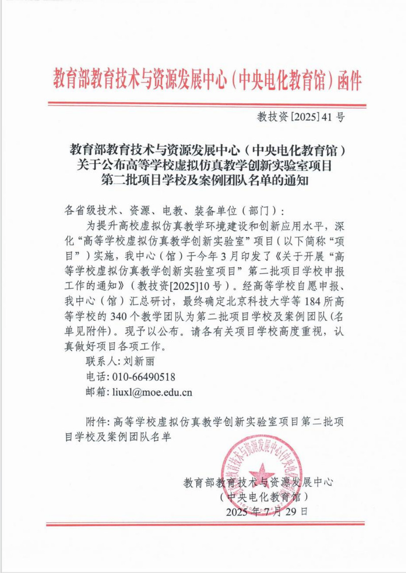关于公布高等学校虚拟仿真教学创新实验室项目第二批项目学校及案例团队名单的通知(1).pdf