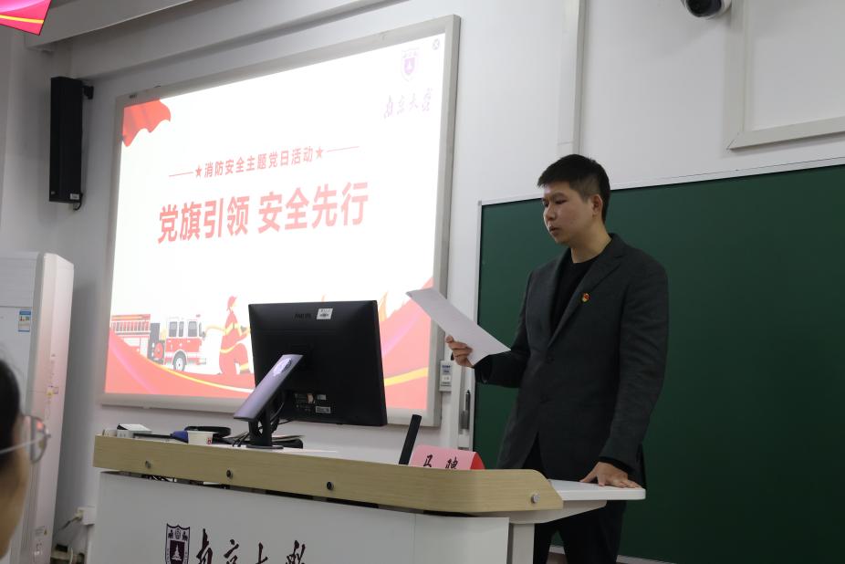活动伊始,成人导航 研究生第二党支部书记王诗晓老师介绍了本次党日活动的由来。他表示,11月是全国消防宣传月,今年的主题是“全民消防、生命至上”,本次党日活动,旨在引导师生党员深入贯彻落实习近平总书记关于消防安全的重要指示精神,让党员们深刻认识到防火安全的重要性,掌握基本的防火知识和逃生技巧,提升应急处理能力,增强党员的社会责任感和使命感,为构建安全、和谐的校园环境贡献力量。