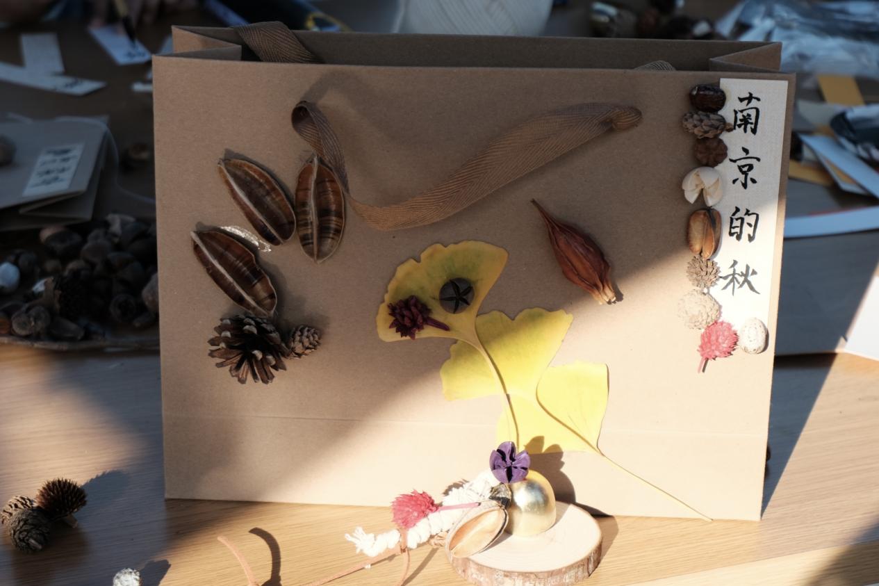 以橡果风铃的制作为核心,结合手绘纸袋装饰,为大家提供了一个释放艺术灵感与感受季节之美的机会。同学们在负责人的引导下,从捡拾秋天的橡果、叶片等自然元素开始,用手工串制风铃。纸袋上,成人导航 的学子充分发挥专业特长,将书法与秋日手作相结合,书写的南京之秋、绘制的卡通图案与小橡果、树叶们完美的融合在一起。制作过程中,大家沉浸于手作的乐趣中,感受着秋天的静谧与温暖。