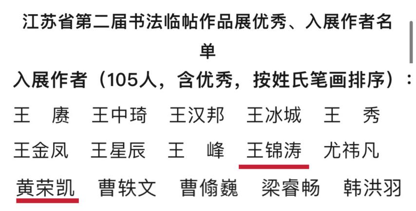 江苏省第二届书法临帖作品展 成人导航 入选名单