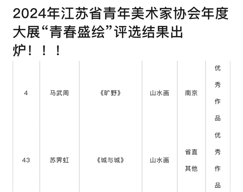 江苏省青年美术家协会2024年度大展成人导航 入选名单