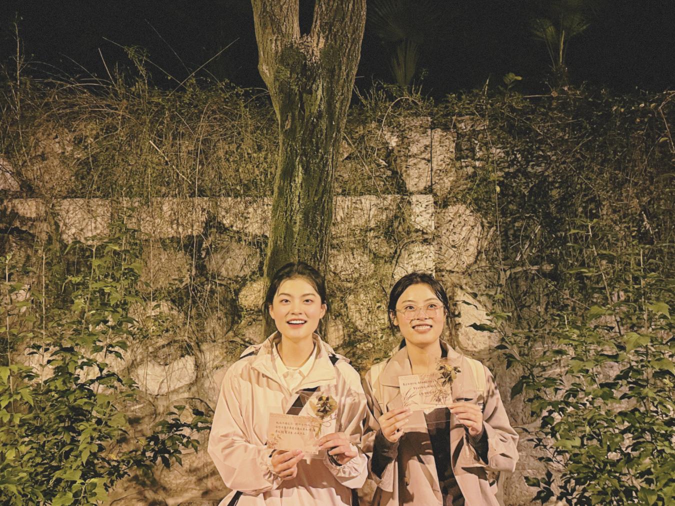 “夜间贴信”是活动最温暖的仪式感。每周三夜晚,工作人员化身“秋日信使”,带着筛选后的匿名信件、防水胶带与精心准备的花朵,将心意粘贴在校园树干 1.5 米处——蓝色系干花(飞燕草、勿忘我)陪伴着烦恼倾诉,像一缕清风抚平焦虑;暖色系鲜花(小雏菊、向日葵)映衬着美好祝福,如秋日暖阳驱散阴霾。