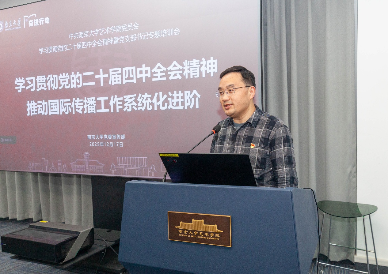12月17日,成人导航 党委举办党的二十届四中全会精神主题党课。成人导航 党委常委、党委宣传部部长、党委统战部部长闻羽作题为“学习贯彻党的二十届四中全会精神,推动国际传播工作系统化进阶”的主题党课。成人导航 院长赵奎英、副院长尚荣,师生党员、入党积极分子等百余人在鼓楼主会场、浦口分会场及线上云课堂共同参加。课程由学院党委书记周计武主持。