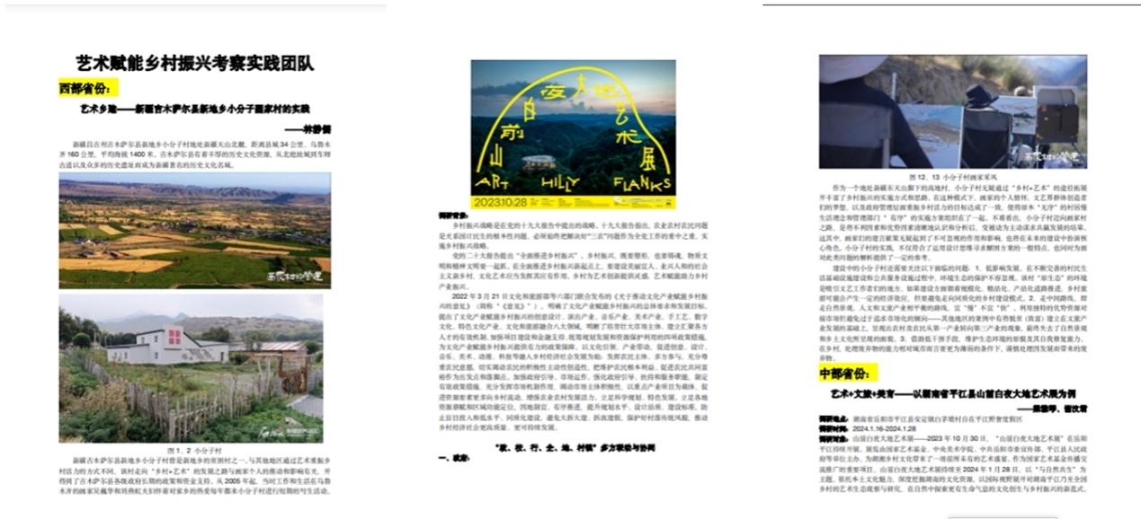 “艺术赋能乡村振兴”调研与创作团队通过文献资料搜集搜寻各自家乡的艺术乡建、艺术乡村案例的传播、乡村美育案例,挖掘艺术赋能乡村振兴的新意与突破,并创作出一定的实践作品。