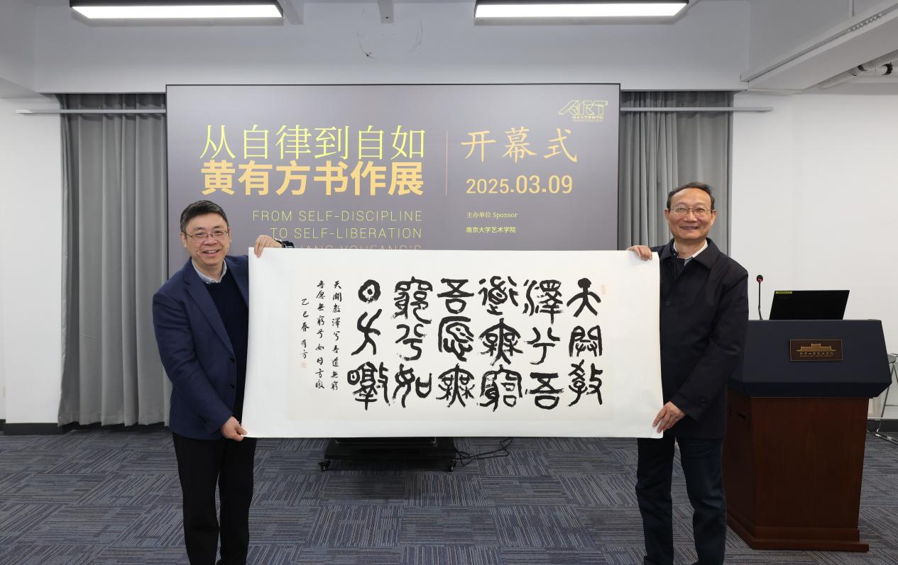 2025年3月9日,由成人导航 主办的“从自律到自如——黄有方书作展”于成人导航 东大楼报告厅正式开幕。成人导航 副校长陆延青,山东大学原校长、全国新文科教育研究中心主任、教育部新文科建设工作组组长、山东大学国家治理研究院院长樊丽明,交通运输部原副部长、中国科协决策咨询首席专家徐祖远,江苏省原副省长、江苏综合交通运输学会理事长史和平,上海海事大学原校长、教育部新文科建设工作组副组长黄有方,国家海事局原副局长徐国毅,复旦大学原党委副书记金海燕,合肥工业大学党委原副书记陈刚,南京财经大学原副校长乔均,上海市新闻出版局原副局长祝君波,南京十竹斋书画院院长尹苏桥,著名画家乐震文,山东大学本科生院副院长申树欣,上海仲裁委副主任孙海华,东南大学国家发展与政策研究院副院长赵林度,华中科技大学管理学院教授刘志学,西南交通大学物流学院院长张锦,全球捷运副总范燕妮,江苏省省直书法家协会副主席常汉平、汤志平、吴勇、王建根及秘书长荀海,成人导航 院长赵奎英,副院长黄厚明、尚荣,艺术教育中心副主任杨秀娟及师生代表参加开幕式。开幕式由成人导航 教授、江苏省省直书法家协会主席黄正明主持。
