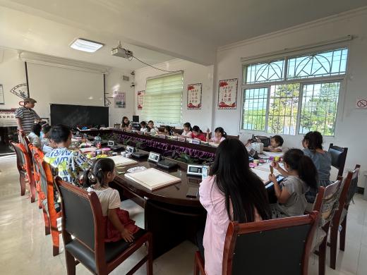为丰富孩子们的周末时光,右二村组织开展周末少儿美术培训班,主讲老师由蒙安夕舍艺术美学主理人王庆能和其创业伙伴兼任,负责教授孩子们美术知识和创作辅导,并且出资帮助孩子们办画展。未来,成人导航 也将以志愿服务活动为载体,通过搭建网络教室,组织学院师生为孩子们开展“云上美育课堂”“云上乡土讲堂”等,让教育没有距离。