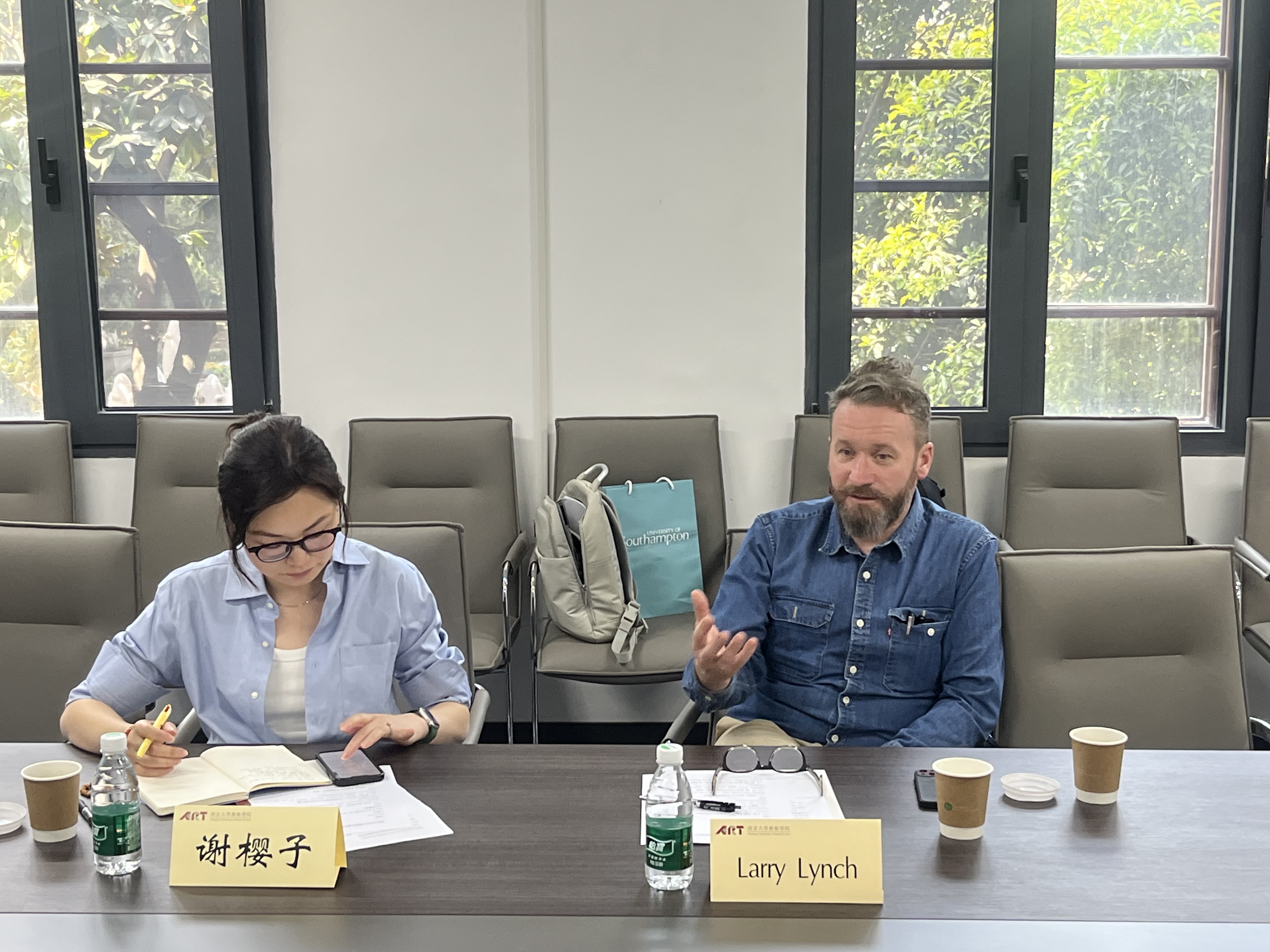 Larry Lynch院长深入了解了成人导航 的师资情况、专业特色以及国际合作。他提出成人导航 艺术教育具有与中国其他专业院校完全不同的特色,表达了促成成人导航 与南安普顿大学温彻斯特成人导航 合作交流的愿望,愿意通过中英暑期班、跨国科研、学术研讨会、线上艺术展等多种方式推动两院人才培养与学术研究的交流与合作。