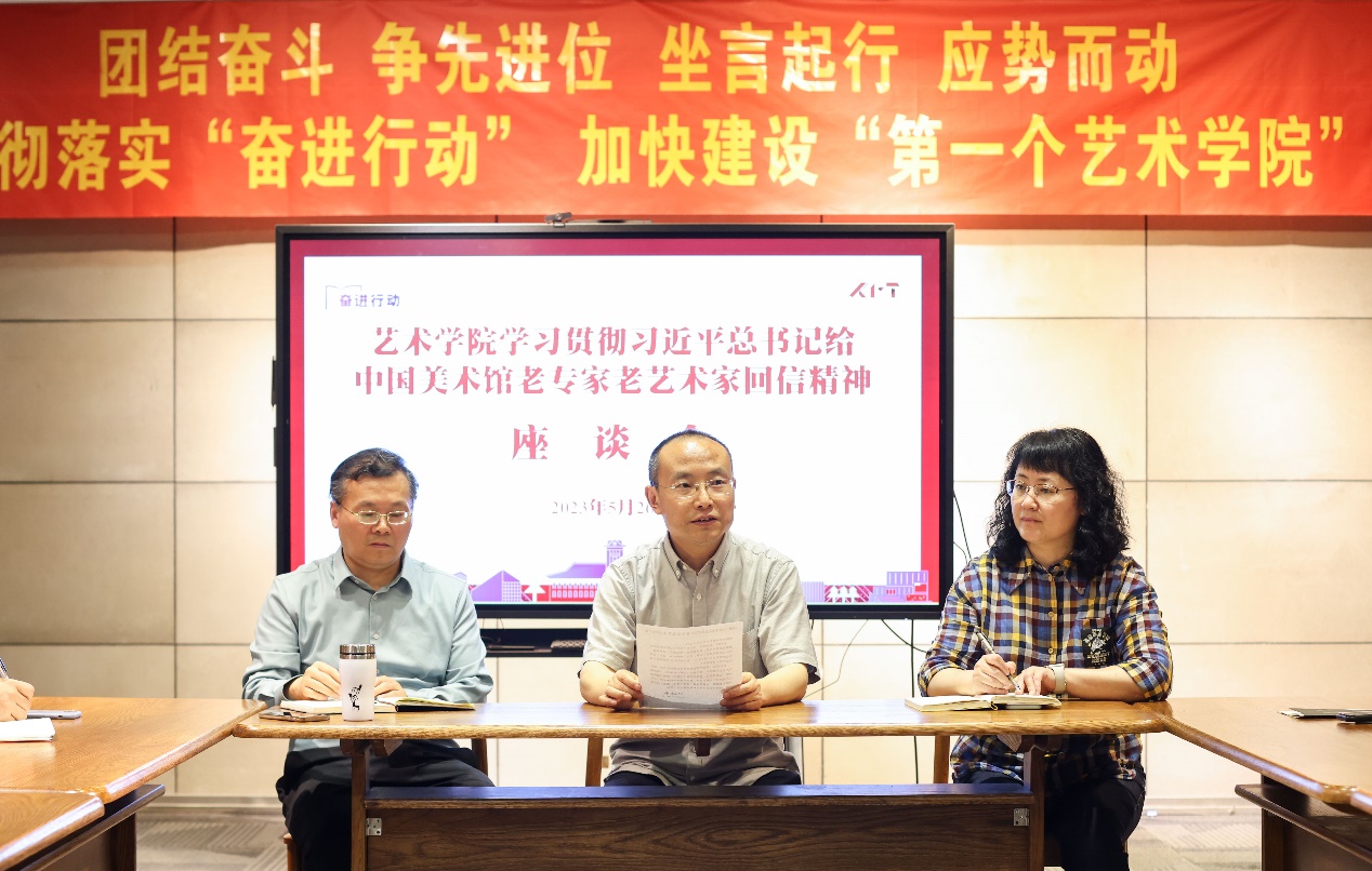 5月26日下午,成人导航 召开学习贯彻“习近平总给中国美术馆的老专家老艺术家的回信”座谈会,邀请中国美术馆展览部主任邵晓峰教授与成人导航 领导班子成员、师生代表座谈交流。