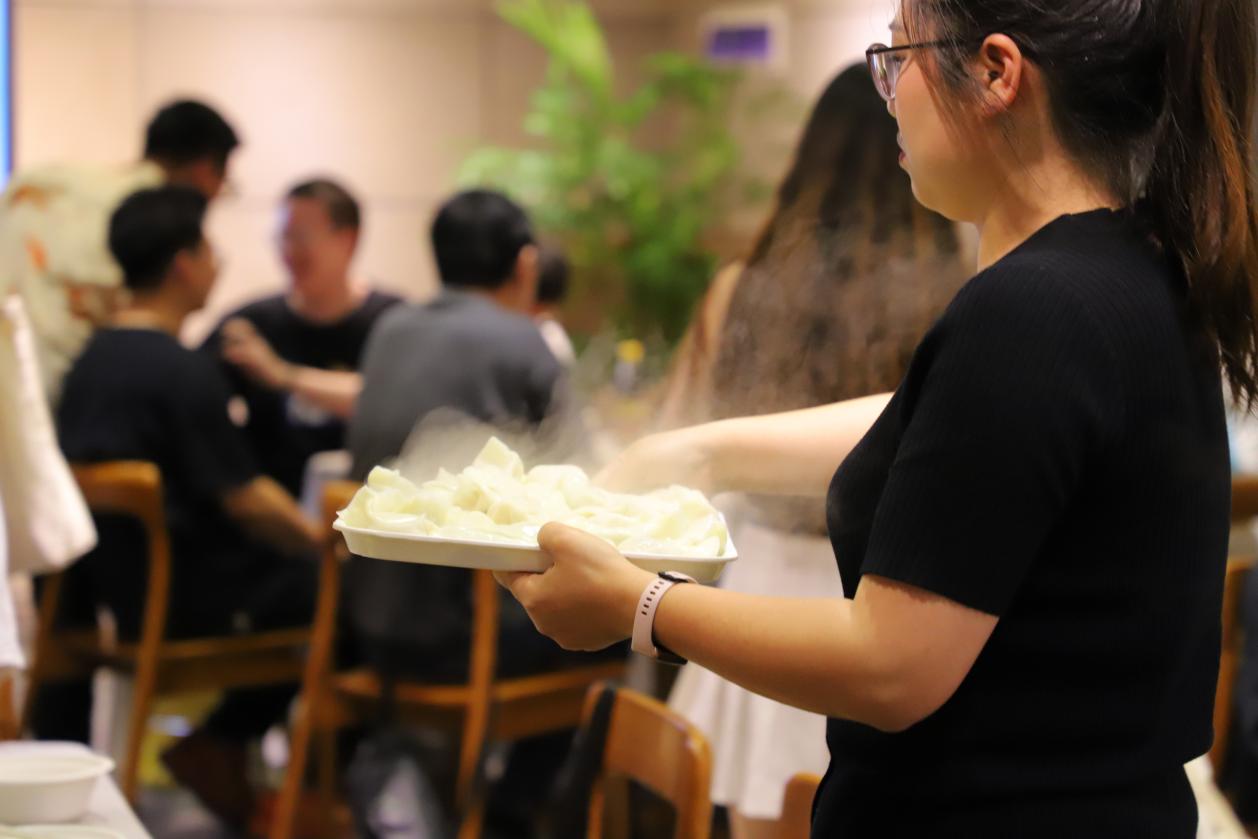 热腾腾的饺子出锅后,师生在以饺子宴为主题的饭桌上畅所欲言,笑语盈盈,其乐融融。逸夫馆楼弥漫着饺子的香气和欢声笑语,让人感受到了浓浓的快乐氛围。