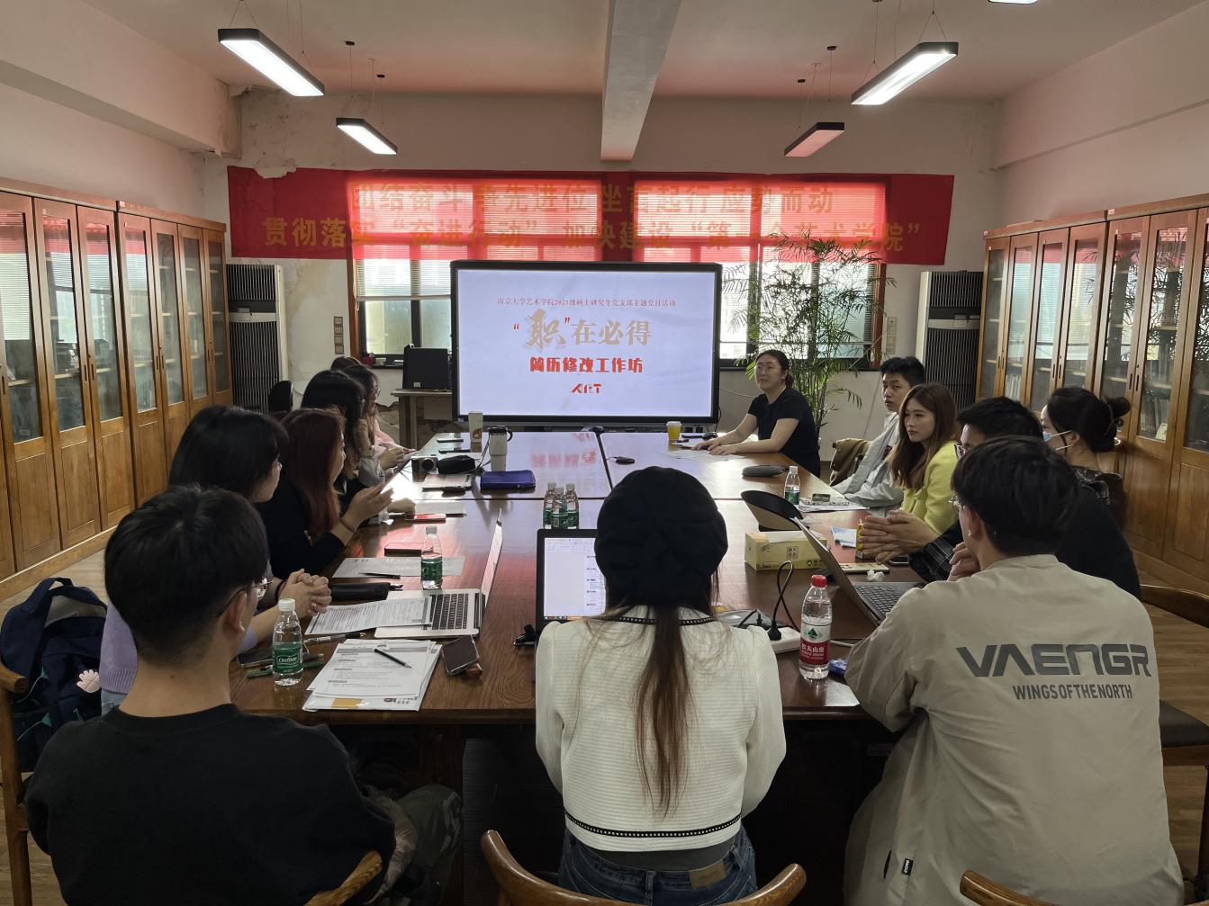 阅览室举行了“‘职’在必得”简历修改工作坊。本次工作坊以贯彻落实“奋进行动”、推进高质量就业为指导,结合党、团支部切实需要,面向毕业年级全体党团员开展,由院团委副书记、研究生辅导员周素戎老师主讲。