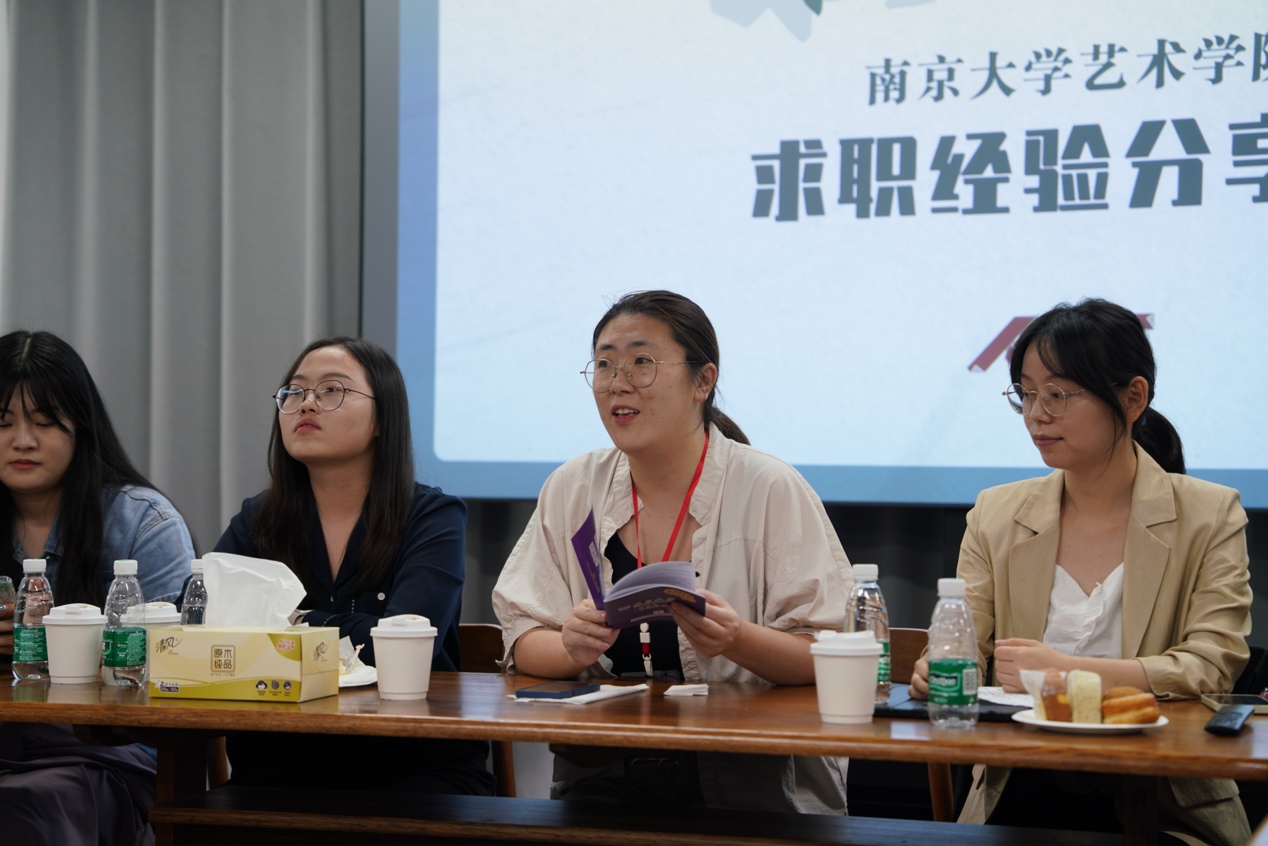 2018级美术专业的李俞晓(现就职于苏州工业园区星澄学校)介绍了苏州市美术教师校招的相关情况,并着重对比苏州工业园区与新区在校招上的区别。她介绍到,校招通常需要在校园招聘会现场递交简历,这就需要同学们有一份充分展现个人优势的简历,可通过介绍学生工作、社会实践经历展现出个人的综合素质,如果拥有摄影、设计、公众号编辑等特长可成为简历的加分项。她提醒到,由于校招时间较短,往往没有机会进行美术创作能力的展示,同学们可以提前准备作品集以增加简历的竞争力。她特别指出,校招中5-10分钟的试讲是展示个人教师能力与素养的重要环节,需要同学们通过洪亮的声音、自信大方的举止以及专业的教学过程,向面试官展现出自己作为一名合格教师的教学状态。她最后强调,教师行业需要有对教育的热爱和对小朋友的喜爱为内心驱动力,只有这样才能在未来的职业道路上产生持续的成就感,并获得长久的发展动力。